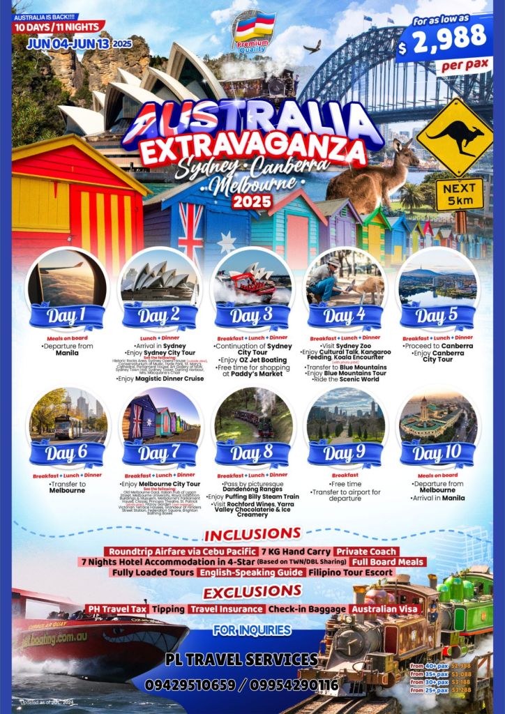DAY 1 MANILA – SYDNEY (MEALS ON BOARD) Departure from Manila.