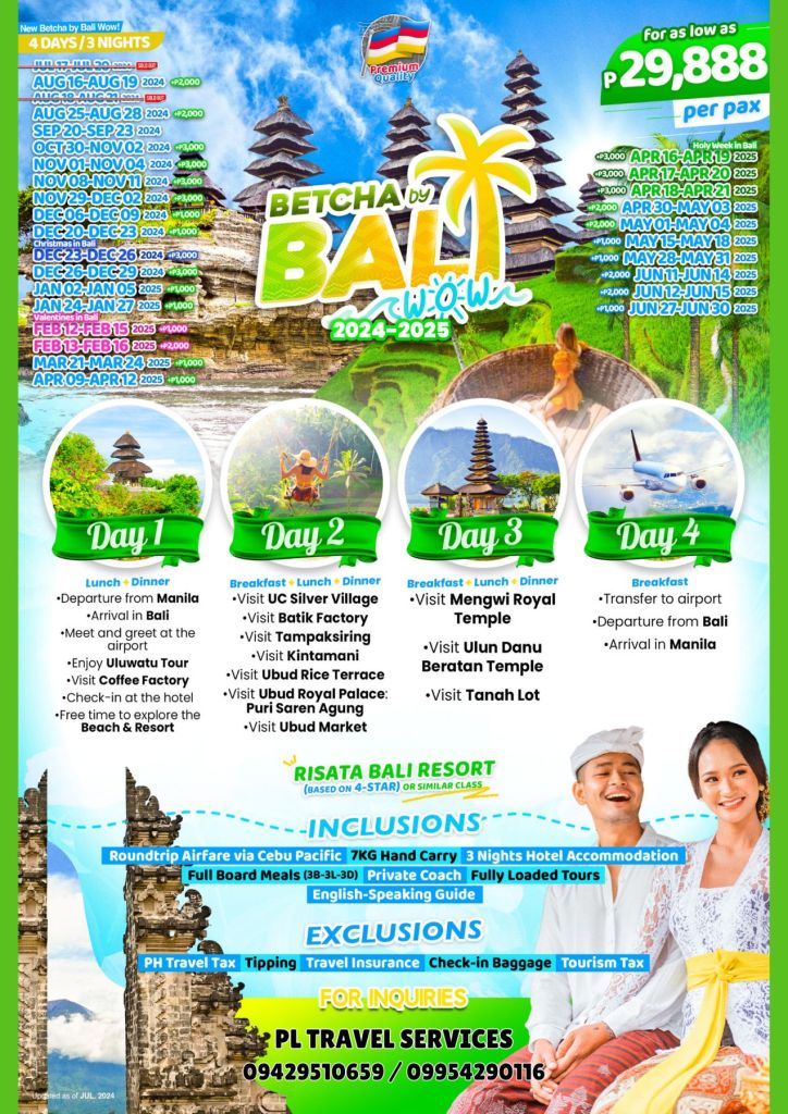 DAY 1- ARRIVAL IN BALI (-/L/D)- Arrival in Bali, Meet and greet at the airportEnjoy Uluwatu Tour, Check-in at the hotel.