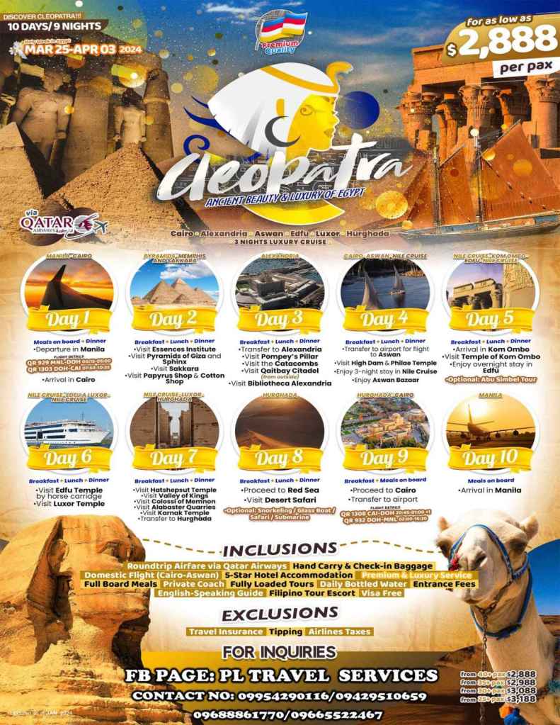 PACKAGE PRICE (TWN/DBL ONLY): USD 2,888/head for 40 pax confirmed joiners