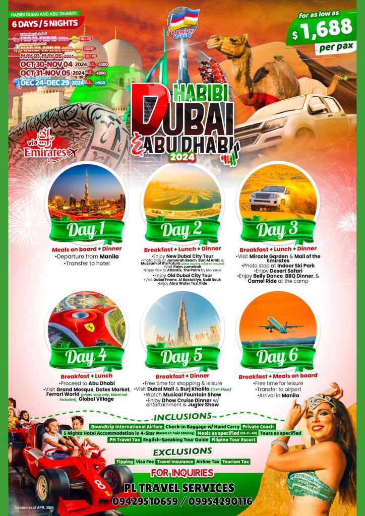 VIA EMIRATES: EK 337 30OCT MNLDXB 0750 1320 / EK 336 04NOV DXBMNL 1755 0620+1