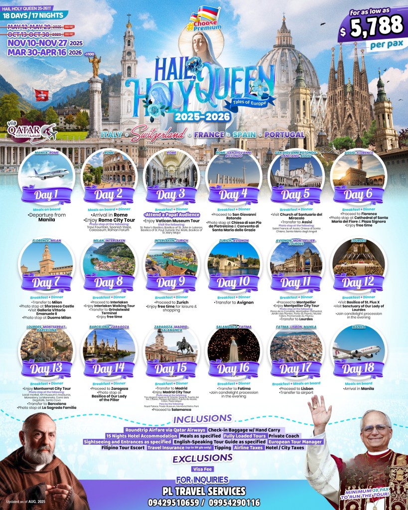 BOOKING CONFIRMATION/SERVICE VOUCHER WILL BE ISSUED UPON DOWN PAYMENT AS PROOF OF RESERVATION. THE AIRLINE TICKETS WILL BE GIVEN ON THE DAY OF PRE-DEPARTURE ORIENTATION OR 5 DAYS BEFORE THE DEPARTURE DATE.