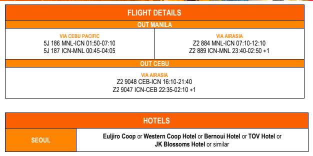 - BOOKING CONFIRMATION/SERVICE VOUCHER WILL BE ISSUED UPON DOWN PAYMENT AS PROOF OF RESERVATION. THE AIRLINE TICKETS WILL BE GIVEN ON THE DAY OF PRE-DEPARTURE ORIENTATION OR 1 WEEK BEFORE THE DEPARTURE DATE.