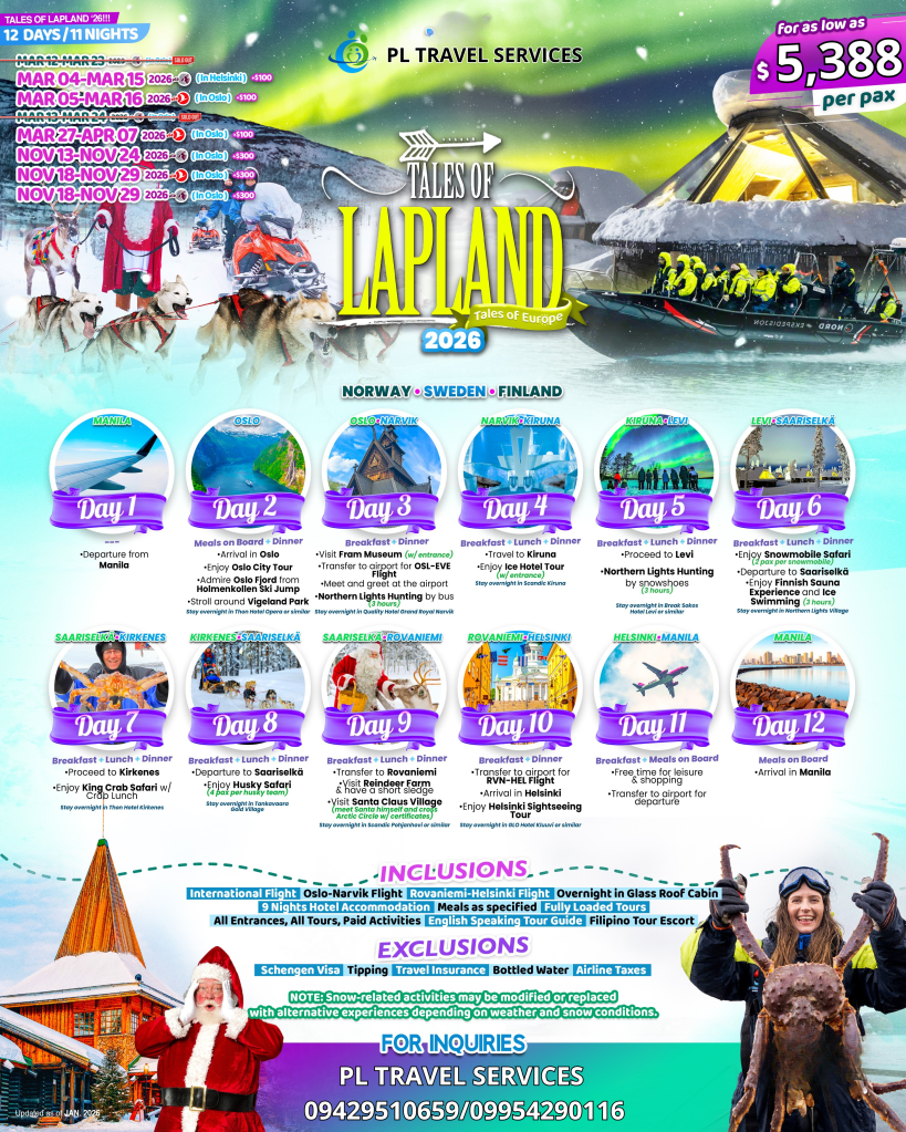 FULL PAYMENT MUST BE SETTLED 45 DAYS BEFORE THE DEPARTURE DATE. FAILURE TO PAY THE REMAINING BALANCE, THE COMPANY RESERVES THE RIGHT TO CANCEL THE BOOKING WITHOUT PRIOR NOTICE. THE RESERVATION FEE/DOWN PAYMENTS WILL BE FORFEITED.