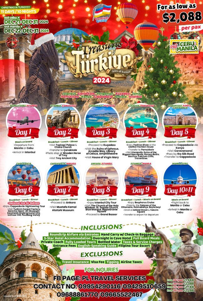 DAY 1: MANILA – ISTANBUL (MEALS ON BOARD) Departure from Manila. Take the international flight to Istanbul and pickup clients by one of our most professional english- speaking guide. Check-in at the hotel.